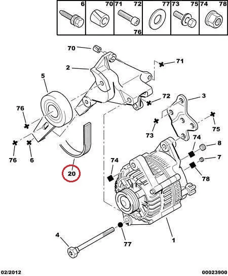 Ремінь генератора на Фіат Дукато 230, Пежо Боксер і Сітроен Джампер з 1994 по 2002 рік випуску з кондиціонером і двигунами 1.9D/TD (1905/XUD9).